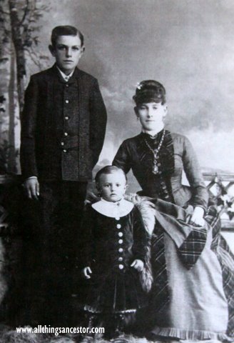 Clara’s mother Harriett divorced James McGregor and married a Mr. Livingston. They became the parents of one son, who is shown as the youngest in this photograph along with Clara and her brother James McGregor.